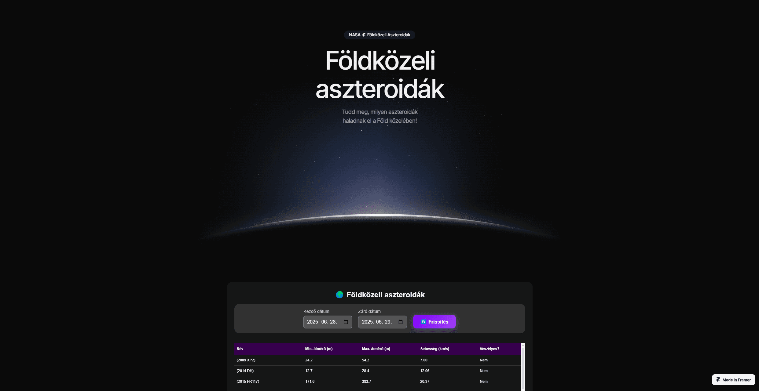 Az Asteroid Monitor egy Java alapú backend szolgáltatás, amely a NASA nyilvános Near Earth Object (NEO) API-ját hívja meg, majd az adatokat strukturált formában továbbítja a frontend felé. A rendszer alapját egy Spring Boot alkalmazás adja, amely DTO-kon, szervizeken és egy külön REST kliensen keresztül kapcsolódik a NASA API-hoz.